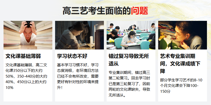 通过系统化的培训方案,艺术生能够在有限时间内实现文化课成绩的最大化提升。培训班不仅适合基础薄弱的学生,更能帮助所有艺术类考生实现成绩突破,为高考做好充分准备。