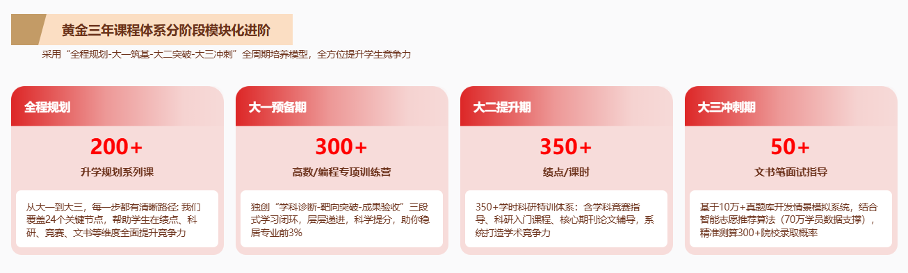 后保研,研鹿教育旗下品牌,致力于提供研究生推免教育咨询、辅导和学习平台的搭建。依托北京地区丰富的人才资源和科技优势,后保研不断升级迭代课程与服务,打造保研行业匠心品牌。目前,我们的推免课程业务已覆盖推免全阶段学生,提供包括全程规划、定位分析、专业课绩点提升、英语培训提升、学科竞赛辅导、科研论文提升、夏令营参营指导、预推免笔面试指导等大学生升学陪跑全程服务。发展至今,累计帮助30000+学子斩获梦校offer。