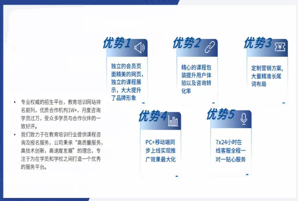 2.希望扩大招生范围的教育机构:对于希望扩大招生范围、提高招生效率的教育机构来说,代理招生平台是一个理想的选择。通过平台,教育机构可以接触到更广泛的潜在学生群体,同时利用平台的推广手段提高自身的知名度和影响力。