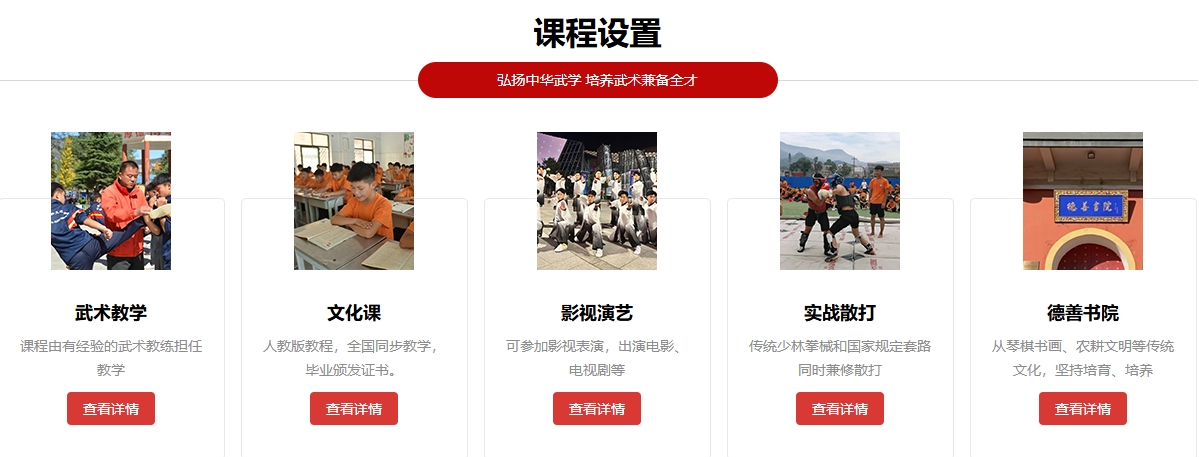 学校与道教圣地中岳庙相邻,这使得学校的文化底蕴更加深厚。学生可以在这里感受到中国传统文化的魅力,同时也可以领略到中岳庙的历史和人文价值。学校注重文武教育,培养文武双全的人才。在文化课方面,学校开设了语文、数学、英语等主要学科,以及与武术相关的课程,如武术基本功、拳术、器械等。此外,学校还注重学生的品德教育,通过严格的管理和纪律,培养学生的良好行为习惯和道德品质。