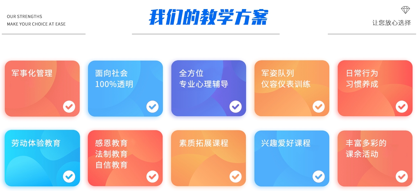 专业师资团队:营地拥有专业拓展培训师、专职训练教官、国防教育讲师等多名优秀才干,均已获得相应职称,且部分教官拥有四年以上军训及学生训练经验,能够为学员提供专业、系统的军事训练指导。营地通过升旗仪式、红色电影、历史故事等形式传递国防知识,激发学员爱国情怀。同时,注重感恩教育,引导学员体察父母辛劳,用行动表达感谢,培育知恩于心、回馈于行的品格。